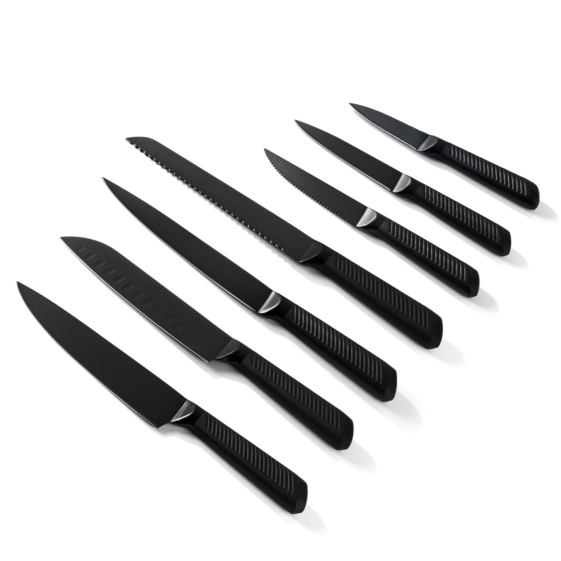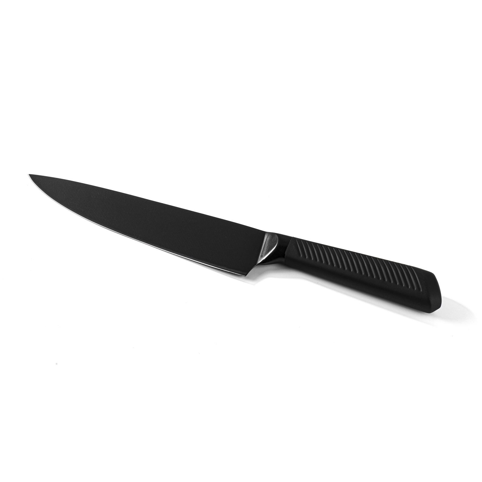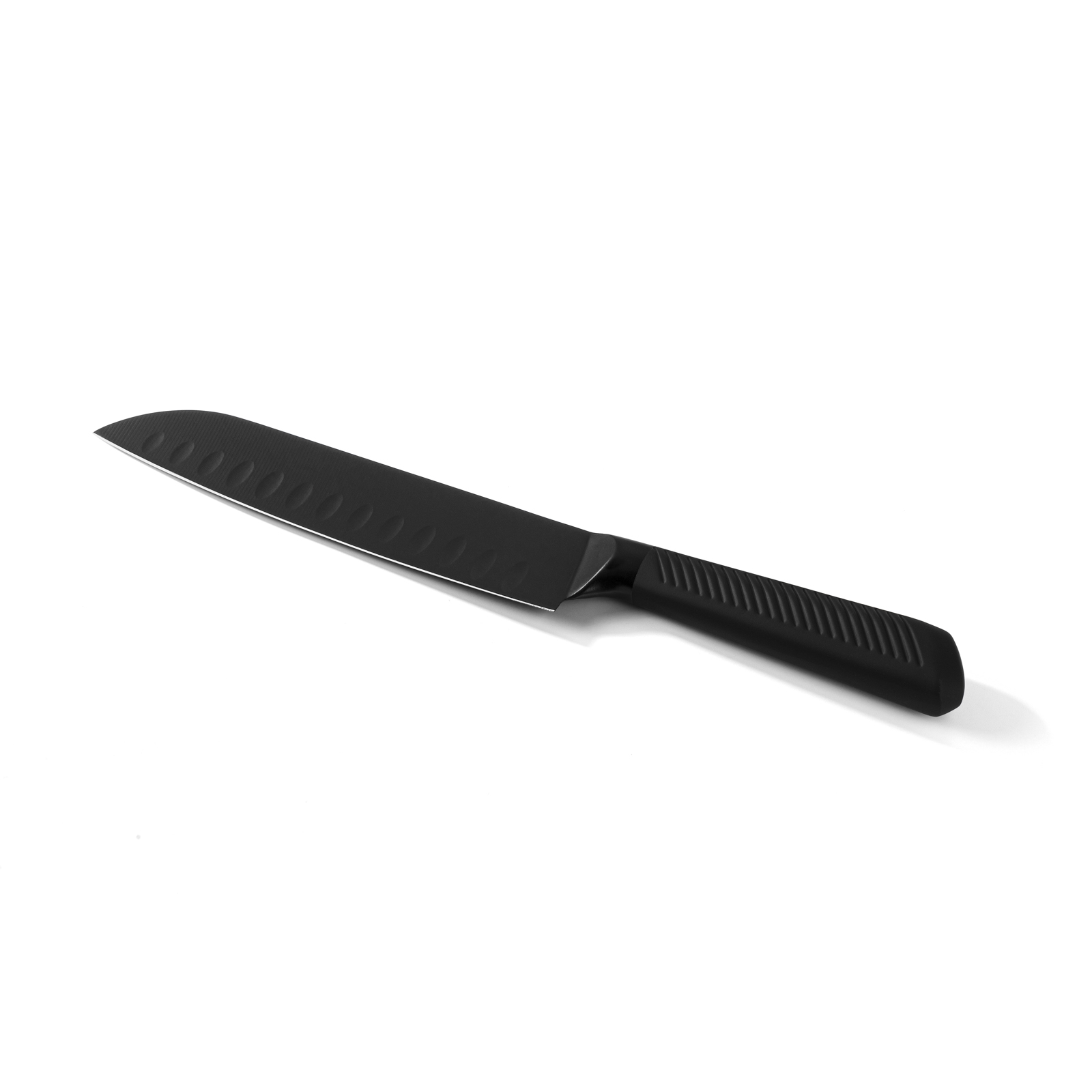 三徳包丁、牛刀、パン切り包丁、スライスナイフ、果物ナイフ、ステーキナイフ、万能ナイフなど、肉や魚、野菜、パンまで幅広く対応できるラインナップ。刃の形状は研ぎやすく、お手入れも簡単なため家庭でも扱いやすいのが特長です。黒で統一されたミニマルなデザインがキッチンを引き締め、洗練された印象に仕上げます。専用ボックス付きでギフトにも適しており、実用性とデザイン性を兼ね備えたアイテムです。