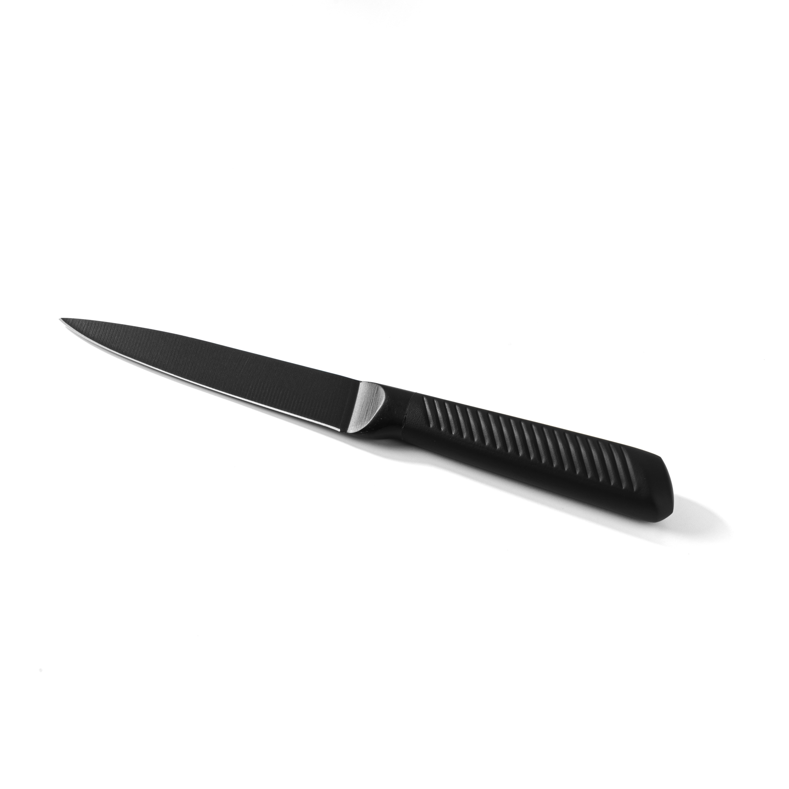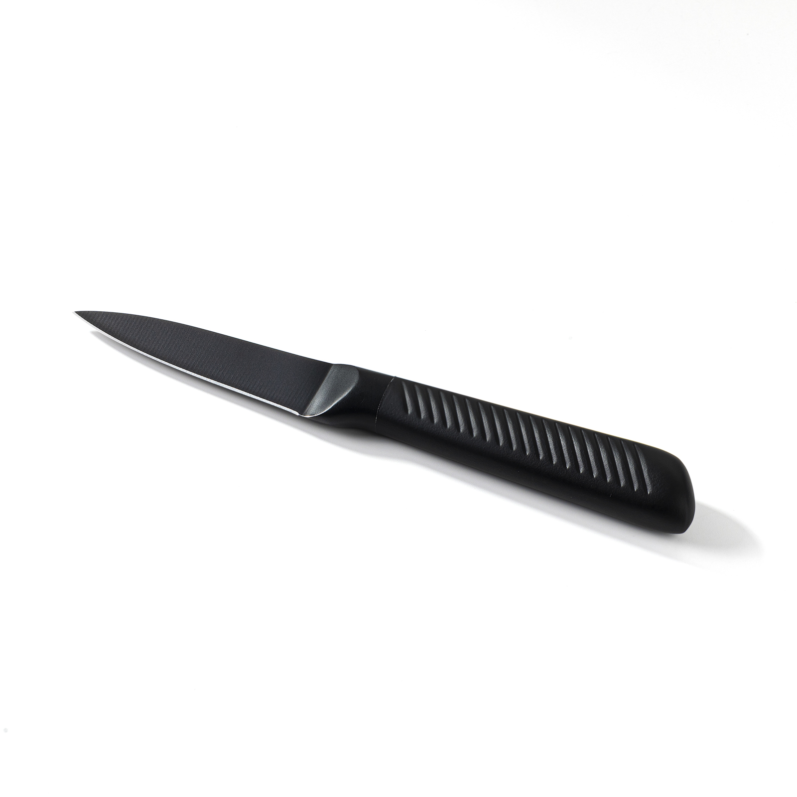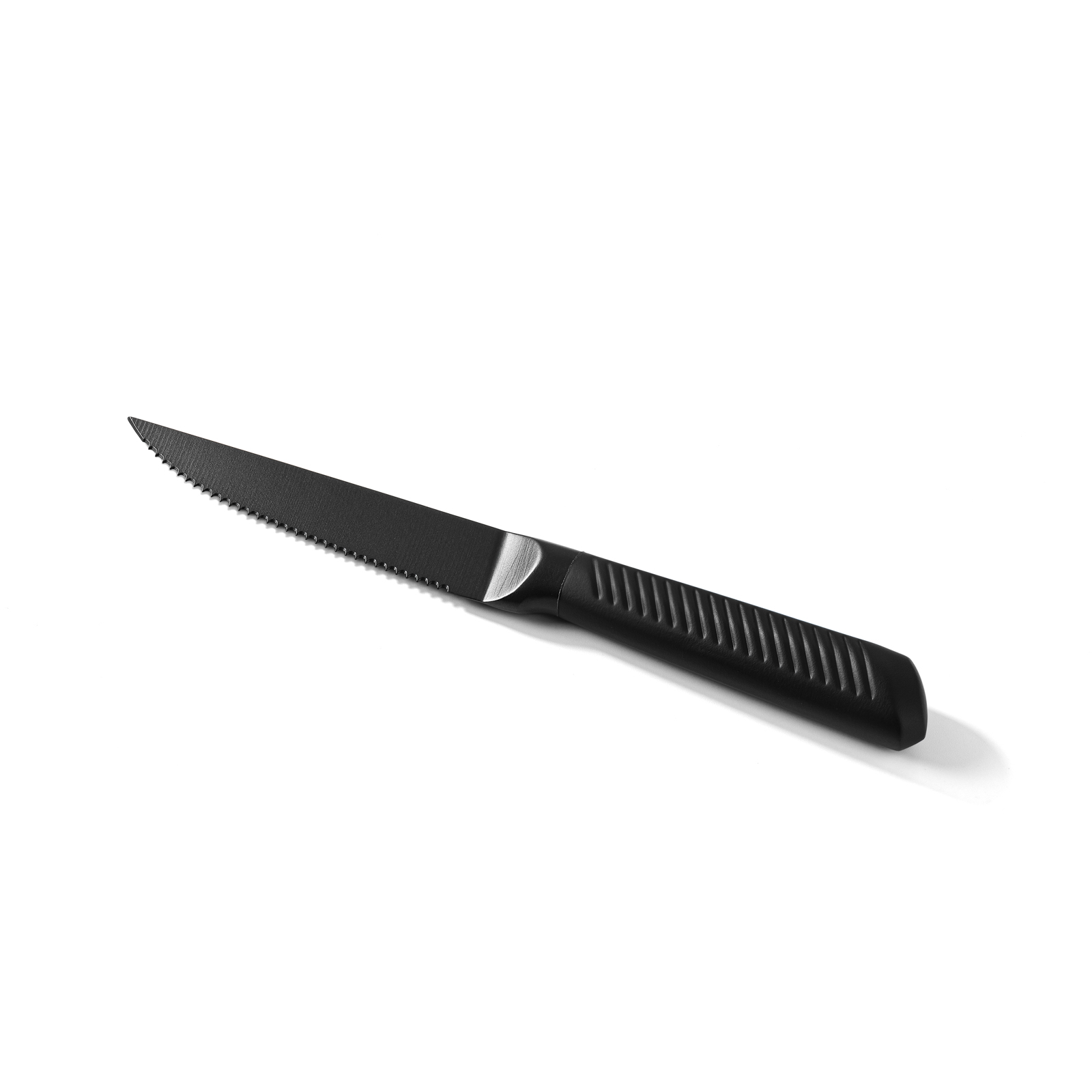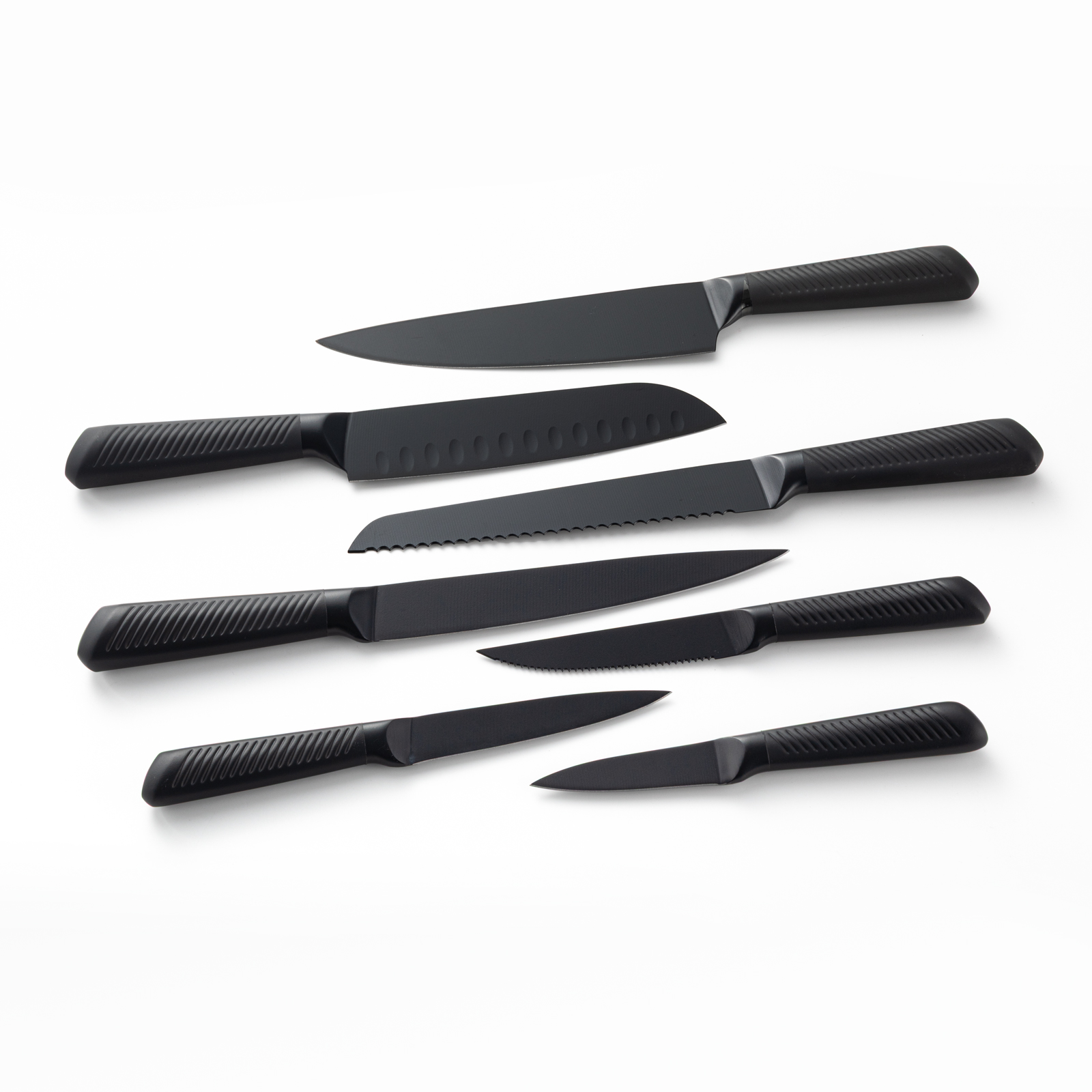 三徳包丁、牛刀、パン切り包丁、スライスナイフ、果物ナイフ、ステーキナイフ、万能ナイフなど、肉や魚、野菜、パンまで幅広く対応できるラインナップ。刃の形状は研ぎやすく、お手入れも簡単なため家庭でも扱いやすいのが特長です。黒で統一されたミニマルなデザインがキッチンを引き締め、洗練された印象に仕上げます。専用ボックス付きでギフトにも適しており、実用性とデザイン性を兼ね備えたアイテムです。
