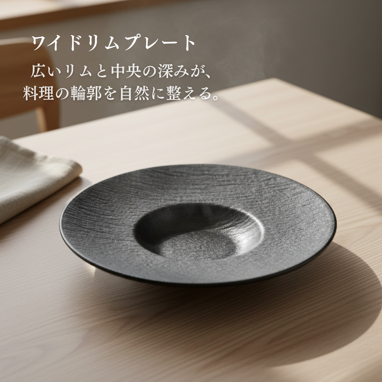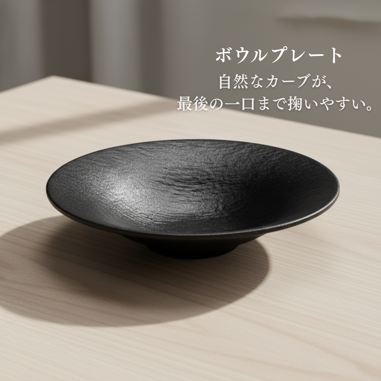 ワイドリムプレートは、余白を活かした盛り付けに最適で、いつもの料理を一段上の印象に。ディッシュプレートは副菜やデザートにちょうどよく、ボウルプレートは汁気のある料理や丼物にも自然に馴染みます。フラットプレートは、朝食からディナーまで幅広く使える万能さが魅力です。どれか一枚が主張しすぎることなく、組み合わせることで食卓に統一感が生まれます。